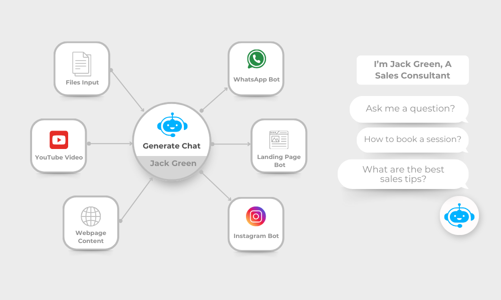 Tương tác bằng chatbot AI, giúp tương tác và chuyển đổi khách hàng tiềm năng trên nhiều kênh.